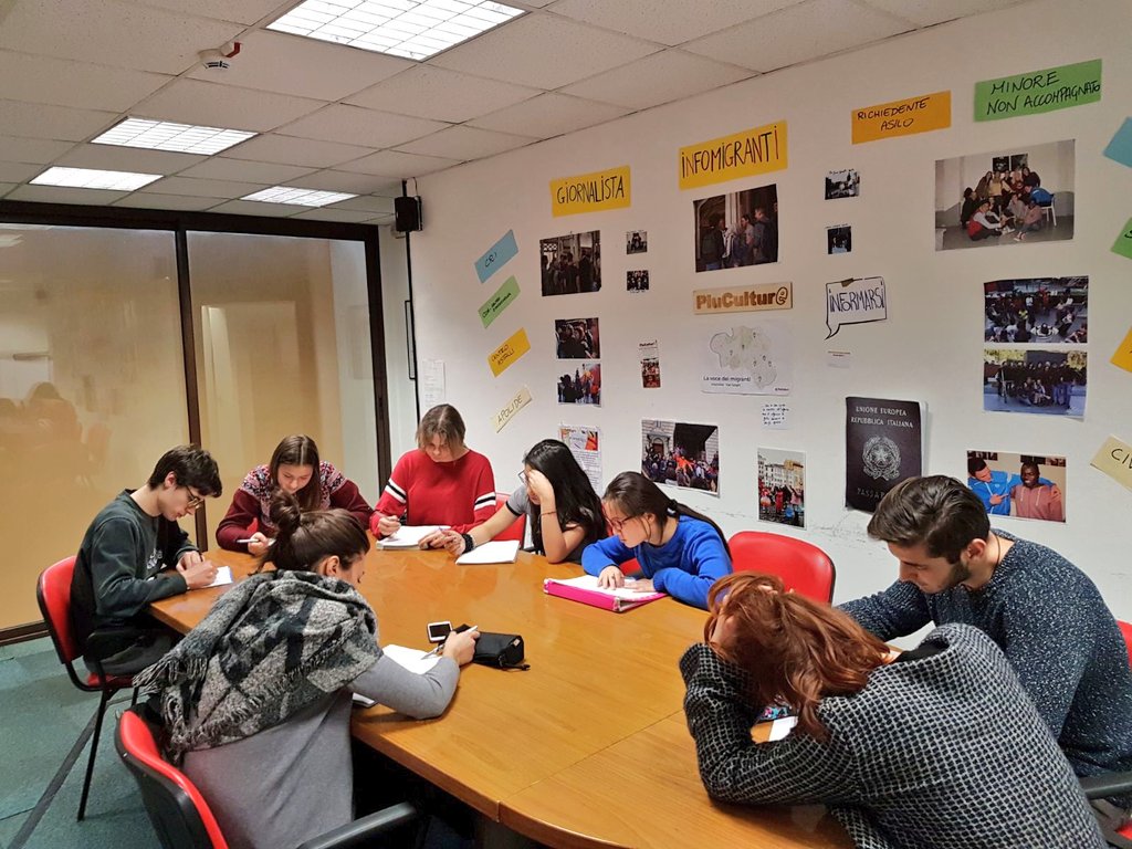 Infomigranti scuolaQualcuno si finge spavaldo, qualcun altro si tormenta le dita mentre parla, qualche altro cerca le parole giuste. 15 studenti, italiani e stranieri, del terzo e quarto anno del Liceo Scientifico Francesco D’Assisi sono alle prese con il loro primo colloquio di lavoro, o meglio di alternanza scuola lavoro. Non sarà selezionato un solo candidato, ma tutti parteciperanno alla quarta edizione del laboratorio di giornalismo sociale Infomigranti di Piuculture, la seconda dedicata alla scuola. Dall’altra parte della scrivania le tutor e la direttrice responsabile del giornale sono a loro agio nel ruolo di chi fa le domande: emergono passioni, attitudini e abitudini dei giovanissimi partecipanti.A turno gli studenti affrontano il colloquio. Il percorso formativo sarà un assaggio del mondo del lavoro con le regole che contraddistinguono la professione del giornalista, ma non solo: dalla prova di selezione al rispetto delle scadenze, fino al valore del lavoro di gruppo che è presupposto fondamentale per il raggiungimento degli obiettivi, anche quelli più ambiziosi.