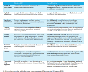 Uno strumento europeo utile allo scopo ma scarsamente utilizzato in Italia è quello della Carta Blu, che può essere richiesta dai lavoratori extra-UE altamente qualificati per fare ingresso in un Paese membro al di fuori del regime delle quote d’ingresso. Nell’arco di pochi mesi l’Italia dovrà recepire le modifiche previste dalla nuova Direttiva sulla c.d. “Carta Blu” (1883/2021).