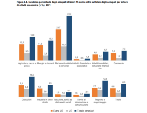I dati relativi all’incidenza di lavoratori stranieri extra-UE nelle varie attività economiche rendono evidente il fenomeno dell’etnicizzazione di alcuni settori lavorativi, a basso reddito e a bassa specializzazione. Il ricorso alla manodopera straniera unicamente per quei lavori “che gli italiani non vogliono più fare” è sbagliato non soltanto dal punto di vista etico ma anche da quello strategico. È infatti fondamentale che l’Italia sia pronta ad accogliere l’apporto modernizzante di lavoratori stranieri altamente qualificati.