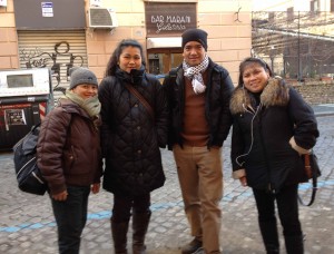 Tra radio e Chiesa Ninfa Sanigan porta avanti il suo ruolo di coordinatrice del gruppo in maniera volontaria, come tutti gli altri, vive in Italia dal 1981 e, avendo cinquantaquattro anni, ha passato qui più della metà della sua vita. “Sto pensando di prendere la cittadinanza, ma sono perplessa, il carico delle tasse potrebbe schiacciarmi.” Ha sempre lavorato come colf a tempo pieno. “Adesso lavoro con una nuova famiglia, sono stata licenziata dalla precedente dopo diciassette anni di lavoro, avevo preso dei mesi di stacco, tre li ho dedicati a mia figlia per darle una mano con il bambino appena nato e due per andare nelle Filippine.” E’ abitudine consolidata subito dopo il programma, andare a messa con le proprie famiglie. Sono ferventi cattolici, attivi presso la Chiesa di Santa Croce, in via Guido Reni, frequentata da una numerosa comunità di origine filippina e per questo ormai una domenica al mese la messa viene condotta nella loro lingua madre.