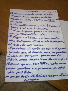 “Una lezione sul mondo”. In quest’anno scolastico sono stati affrontati, per ovvie ragioni di attualità, soprattutto temi politici: “dal nostro punto di vista – dice Chiara – le problematiche politiche sono importanti per vedere come confluiscono nella storia di una persona”. Dalla rivolta alla resistenza, dalle regole alla dignità, dal viaggio ai confini che si sono dovuti superare: “per esempio abbiamo fatto un bellissimo lavoro sugli “Eroi”, quelli famosi e quelli della propria vita” dice Fiorenza, un’altra volontaria. Oggi la lezione unirà eccezionalmente le classi e si parlerà del mondo. Formiamo un grande cerchio, siamo quasi 60 persone, poche donne, tutte timidissime. In tema con la lezione, ci salutiamo in tutte le lingue: ascolto più di 20 “buongiorno”. A vedere così vicine così tante nazionalità, mi rendo conto di quanta ricchezza ci possa essere in una sola stanza. Cantiamo – tutte le cose al di sotto della luna sono sottoposte al desiderio di fortuna – una canzone scritta da loro. Poi facciamo il “gioco della sedia”, mentre sotto suona un’italianissima tarantella. Io sono vicina ad Aisha, libica, e Liliana, bulgara, terrorizzate di perdere quasi quanto me! A questo punto, sono ormai le 10:30, inizia la lezione vera e propria. Chiara ci divide per paesi: ogni gruppo dovrà scrivere una presentazione del suo, sottolineando un punto di debolezza e uno di forza e poi “raccontarlo agli amici”.