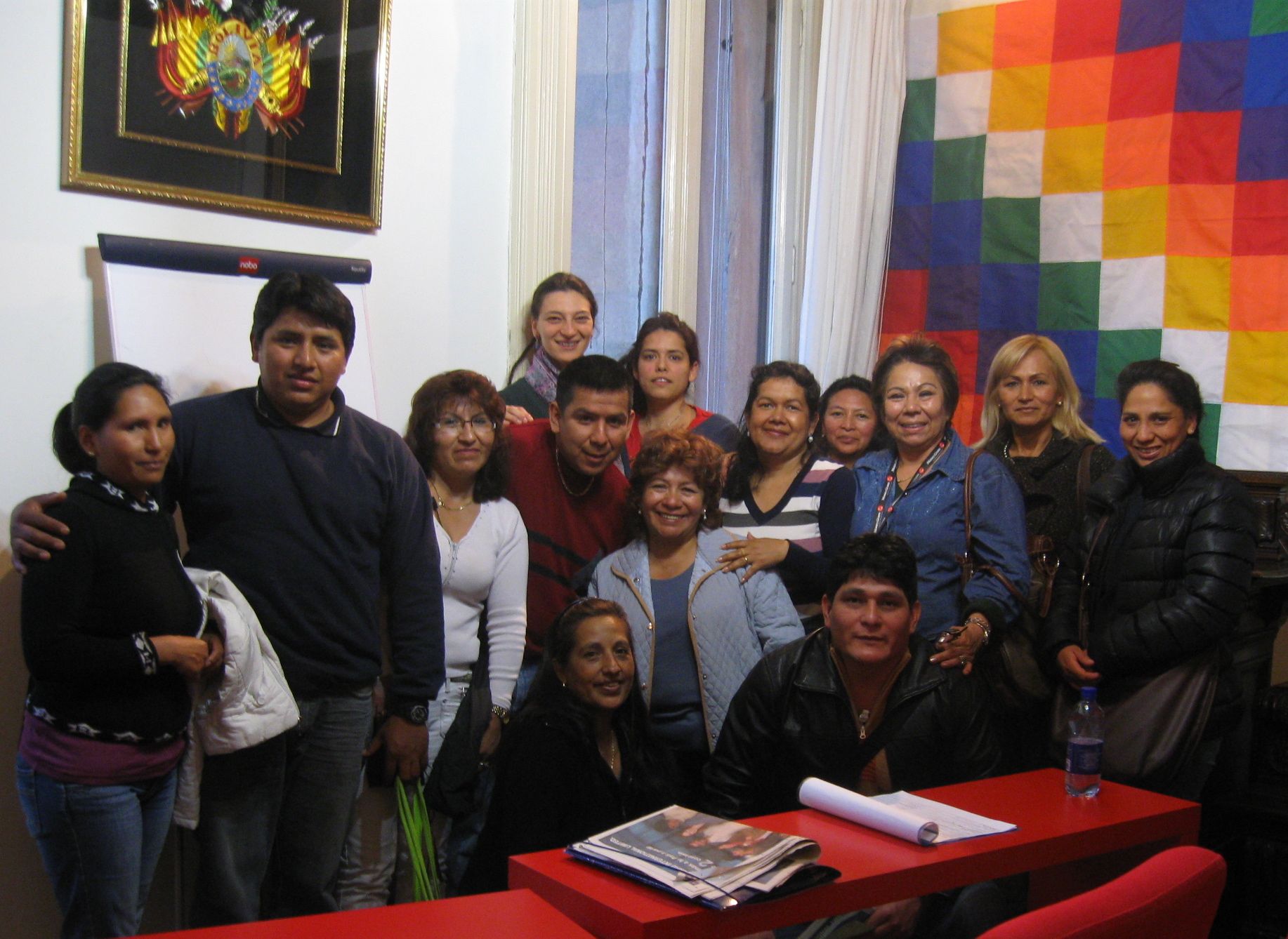 L’Ambasciata Boliviana accoglie gli studenti d’italiano in una delle sale: sedie foderate di rosso, arazzi appesi al muro e una lavagna dove ancora si legge qualche appunto della lezione precedente. L’esame è vicino; manca meno di una settimana. Sono le cinque e mezza e l’aula comincia a riempirsi. Noemi e Lidia, le prime arrivate, riguardano gli esercizi. Entrambe sulla cinquantina e originarie dello stesso paese ma si sono conosciute in Italia. Le due compagne di banco si aiutano e si divertono, niente da togliere a due allegre liceali.
