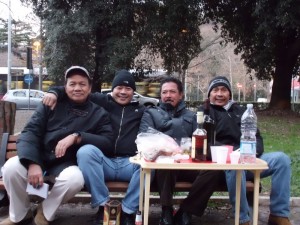 Una porzione di città che la comunità filippina vive ormai come propria: “Durante gli incontri c’è sempre uno di noi incaricato di raccogliere i rifiuti e una volta al mese l’Ambasciata delle Filippine manda del personale a pulire la piazza”. Per l’illuminazione si sono organizzati con torce portate da casa. “Abbiamo chiesto al Comune di realizzare una toilette nel parco, a nostre spese, ma siamo ancora in attesa”.