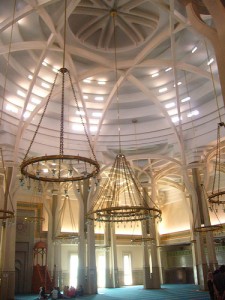 Quest’anno il Centro Culturale Islamico e Scuolemigranti hanno avviato corsi di italiano per stranieri nei locali della moschea. L’idea è partita dall’associazione Piuculture che, durante le grandi feste islamiche, ha organizzato un servizio informativo sulla rete corsi gratuiti attiva in città. In queste occasioni, contattando centinaia di fedeli di tutte le provenienze geografiche e sociali, è emerso un gap di consapevolezza sul diritto allo studio, l’importanza di imparare la lingua e ottenere un certificato valido ai fini della permanenza nel nostro paese. Questo fenomeno da un lato stimola l’impegna di Piuculture a continuare l’attività di informazione ad ampio raggio nei luoghi di aggregazione degli stranieri, dall’altro l’idea di sviluppare l’insegnamento dell’italiano all’interno della moschea. Un luogo bello, accogliente ma un po’ isolato rappresenta una sfida per questa nuova iniziativa. A Roma vi sono corsi più accessibili, alcuni godono della collaborazione di moschee minori, tuttavia si è pensato che il Centro Islamico possa offrire una garanzia per quanti ancora non frequentano volentieri scuole gestite da associazioni italiane.