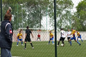 Jocul a avut un ritm vioi. Entuziasmul echipei Dacica cu suportul fanilor a intalnit determinarea echipei EUR care in anumite momente si-a demonstrat potentialul. Mirko Drogo, abil in mentinerea calmului in momente de tensiune si pastrarea mingii, impreuna cu Rus Dorin au daruit publicului un moment intens la al 28’. Alpisandro Sinfoni a rezistat energicei Dacica care dupa marcarea primului gol la al 10’ a neglijat poarta libera lasand posibilitatea lui Stojan Nicolae de a inscrie un gol. Zaharia Ciprian, 23 de ani, autorul primului gol a echipei Dacica a condus un joc indraznet si in doua ocazii a ratat ocazia de a semna gol, diminuind astfel bucuria fanilor.