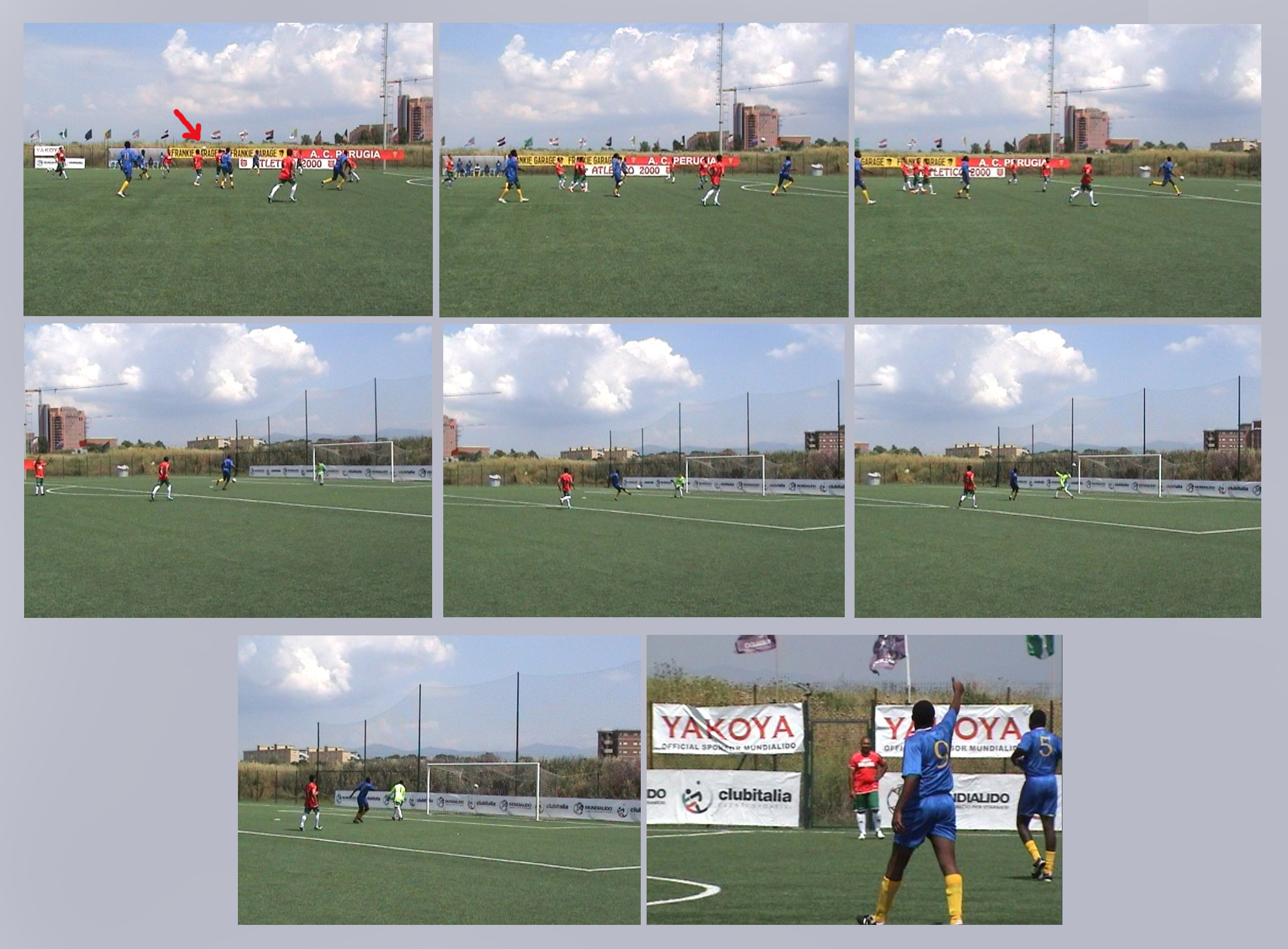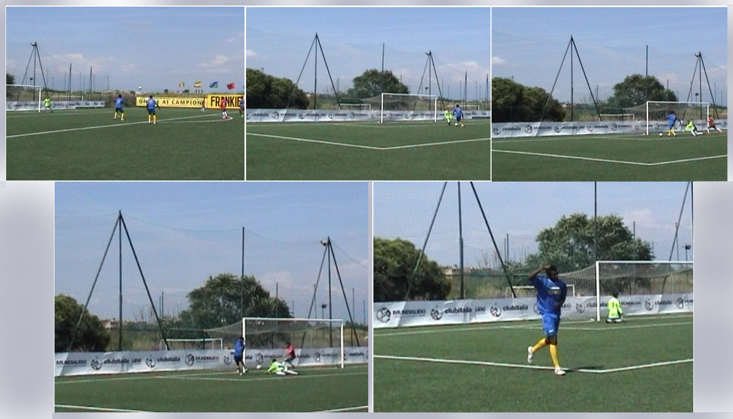 Il Congo va in rete ancora due volte in questo tempo: quasi subito dopo la punizione bulgara, con un ottimo tempismo del 9 che brucia centrocampo ed area (e – si veda la foto – … non c’è il fuori gioco a cui alcuni gridavano), poi ancora al 30’ con l’ala sinistra, il 16, che costringe il portiere all’uscita e lo supera andando a segno aggirandolo, sapiente, calmo, con un piatto destro. Al 37’ la Bulgaria.