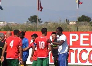 Al 10’ Cristopher, il 10 del Congo, giocatore giovane, vispo e propositivo (che poi purtroppo si farà coinvolgere nella rissa), va in rete. Spreca un’occasione goal di lì a poco e un’altra al quindicesimo: però in tutto quel che fa si spende e le sue azioni goal almeno al 50% le crea proprio lui.