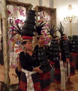 Donne filippine in abiti tradizionali“Filippini e italiani usano la stessa parola per dire ‘regalo’ e l’amicizia è un regalo prezioso che continueremo a nutrire e curare”. Questo l’augurio dell’ambasciatore delle Filippine a Roma, Virgilio Reyes, nella serata di presentazione di Kulinarya, rassegna gastronomica, artistica e culturale organizzata presso il ristorante Doney del Westin Excelsior di Roma per celebrare il 114° anniversario dell’indipendenza e il 65° delle relazioni diplomatiche Italia-Filippine.