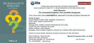 Martedì 25 settembre, si svolgerà la presentazione del libro dello scrittore cileno José Donoso Tre romanzetti borghesi / Tres novelitas burguesas, terzo volume della collana NARRAMÉRICA, ideata dall’IILA ed edita dalla casa editrice Fahrenheit 451.
