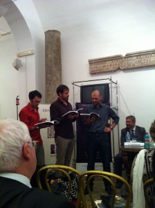 Dopo questo intervento è il turno di Ejaz Ahmed, giornalista pakistano ed esperto di lingua urdu, che sottolinea l’importanza di uno scrittore come Saadat Manto: “ Secondo me questo autore può essere paragonato al vostro Pasolini , non solo per la morte prematura. La sua capacità di raccontare le persone, soprattutto le più umili, è impressionante”. Mentre parla tre ragazzi, sui trent’anni, si alzano dalla platea e iniziano a recitare “live” un brano de “Il cane di Titwal” uno dei racconti più importanti dello scrittore pakistano. Il pubblico è stupito ma allo stesso tempo entusiasta dell’espressività che gli attori riescono a dare al testo di Manto. E’ indubbiamente il momento più emozionante della conferenza e un silenzio totale accompagna lo spettacolo. Questo fuori programma dura quasi venti minuti, al termine dei quali, i tre ragazzi ricevono il giusto applauso. Grazie al loro supporto, gli spettatori, sono riusciti ad entrare nel testo, rapiti dal racconto della guerra tra indiani e pakistani e alle vicissitudini di un piccolo meticcio legato ai due schieramenti. Dopo l’esibizione,la parola passa a Franco Esposito che riprende un altro testo di Manto “L’ultimo saluto”. Anche in questo caso si avvale della complicità di un attore per la lettura di alcune righe. La conferenza volge al termine e con il commento di Sabrina Lei, della Jay Editore , su un altro celebre autore pakistano Mazhar Ul Islam, si conclude con successo questa prima edizione della “giornata della letteratura Urdu”. Un mondo nuovo, tutto da scoprire, semplicemente sfogliando un libro.
