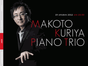 INFO Makoto Kuriya Piano Trio, venerdì 19 ottobre 2012, ore 20. Istituto di Cultura Giapponese, via Antonio Gramsci, 74 Roma. Ingresso libero fino a esaurimento posti. W www.jfroma.it Isabella Lapalorcia @ lapalorcia@jfroma.it T 06 3224754.