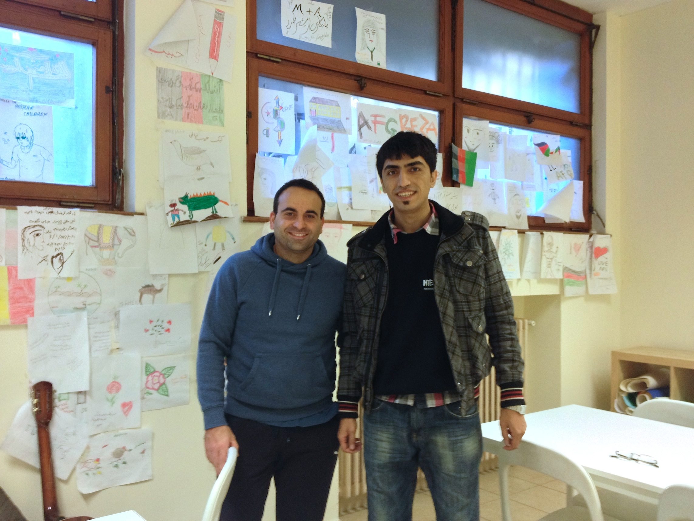 da sinistra: Rudy Mesaroli, operatore e coordinatore dell’operatività di A28 centre, Abbas, mediatore afghano