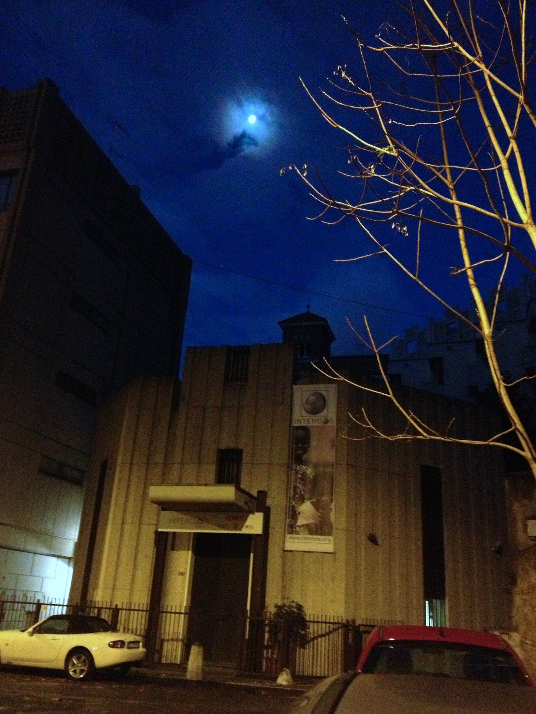 La sede di Intersos all’alba, la luce sulla sinistra arriva dall’ingresso di A28