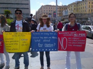 Manifestazioni di protesta si sono tenute in diverse città d’Italia e d’Europa, il 21 aprile è stato il turno di Roma, dove in piazza dei Cinquecento, accanto alla stazione Termini, un nutrito gruppo di venezuelani provenienti anche da altre regioni del Centro, ha espresso il proprio dissenso esponendo le criticità di una situazione poco chiara, con l’obiettivo di far sapere cosa sta succedendo nel loro Paese, alternando alla rabbia e frustrazione canti tradizionali e qualche lacrima per una terra che sembra non uscire da una deriva autoritaria. Le circa tremila violazioni di un normale processo elettorale segnalate non sono state prese in considerazione, così come molte perplessità restano sul peso effettivo che abbiano avuto i votanti residenti fuori dai confini nazionali.