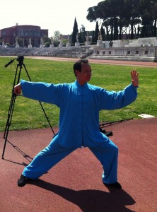 Dopo questa prima parteteorica la lezione si è spostata allo stadio dei marmi. Qui, sotto un tiepido solo primaverile, i maestri hanno dato dimostrazione di alcune tecniche base, per poi seguire i partecipanti. Tutti gli esercizi, dai semplici cerchi nell’aria, sino alle figure più complesse vengono praticati con estrema lentezza e concentrazione dai maestri: ” La forza di quest’arte marziale risiede proprio nell’ampiezza dei movimenti – spiega Ming Xu- che corrisponde ad un uso “totale” dei muscoli e della mente. Una semplice prova di forza infatti, concentra lo sforzo in un unico gesto, ma se utilizziamo tutto il corpo, ci renderemo conto di poter imprimere la stessa forza con un movimento meno faticoso e più completo”.