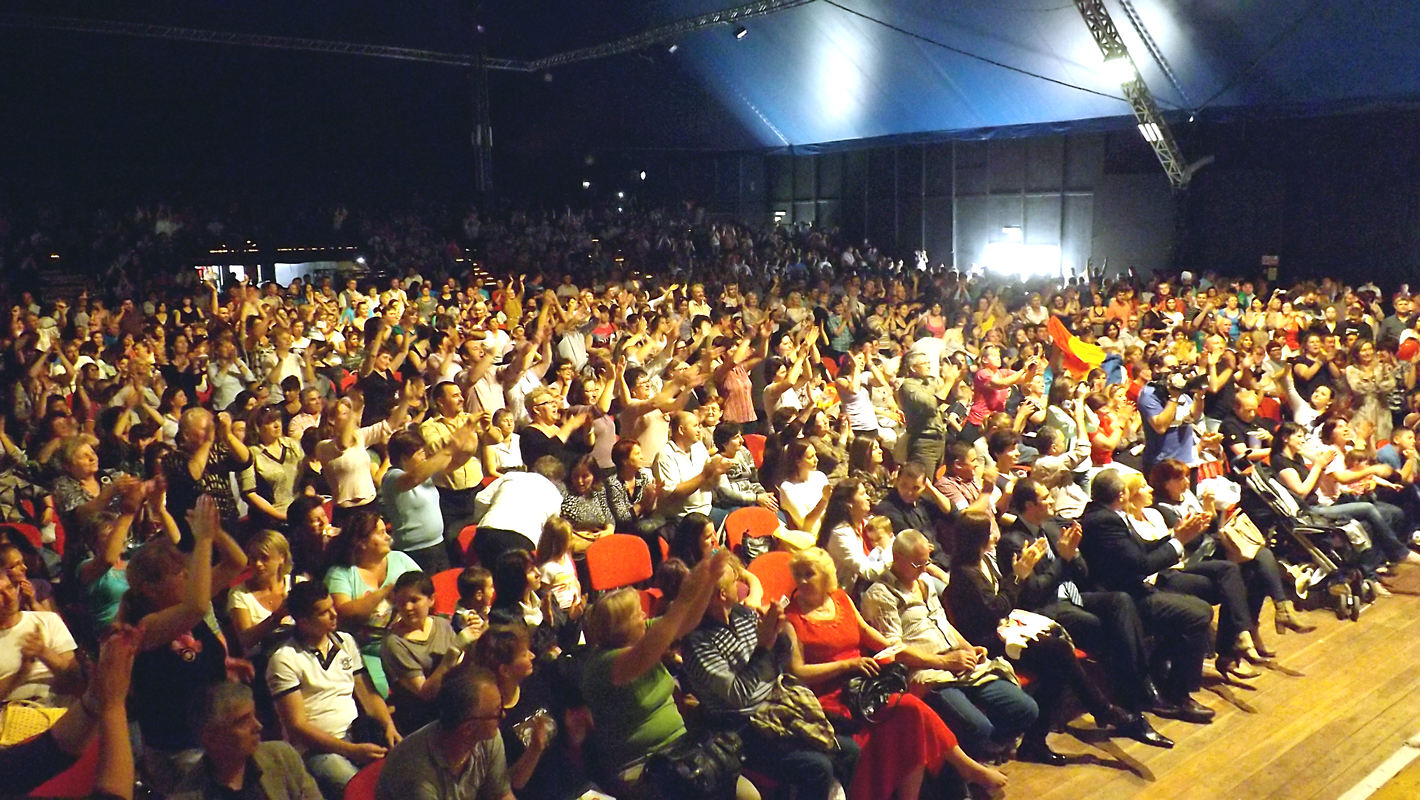 Oltre 4 mila persone hanno partecipato al concerto organizzato da Romit tv il 2 giugno al Teatro Tendastrisce, per festeggiare 1 anno di trasmissione della televisione italo-rumena sul canale 246 sul digitale terrestre. Lo spettacolo si è prolungato per sette ore con musica popolare degli artisti: Laura Lavric, Benone Sinulescu, Nicolae Botgros, Ion Paladi e Adrian Naidin, molto amati dal pubblico. Un pomeriggio positivo e unico per la comunità straniera più numerosa d’Italia. Si sono radunati due ore prima dell’inizio: una folla vociante, davanti all’ingresso, volevano entrare e prendere i posti nelle prime file, infatti l’ingresso era gratuito. La maggior parte erano donne, tante badanti e collaboratrici domestiche che alle 20.00 dovevano ritornare al lavoro. Per non mancare alla festa, alcune hanno portato anche gli anziani, presso i quali lavorano, in carrozzina o a bracetto. Hanno ballato e cantato insieme, perché nelle parole delle canzoni popolari si nasconde tutta la verità della vita che tocca l’animo rumeno e moldavo. Il ritmo della musica tradizionale non permette di stare seduti, fermi: nel ballo mano nella mano non si teneva conto della nazionalità o cittadinanza, è stata un’ opportunità per festeggiare e stare insieme, per riposarsi, per scaricare la fatica del lavoro, condividere la gioia e il dolore. Numerosi indossavano il costume nazionale, hanno avuto la possibilità di assaggiare il cibo tipico ed è stato distribuito del materiale informativo. Per molti è stata una delle più belle giornate della loro vita in Italia.