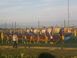 La cronaca L’inizio è al piccolo trotto, non fa particolarmente caldo ma è pur sempre la settima partita in un mese per dei non professionisti. L’Ucraina tiene meglio il campo e riesce a rendersi pericolosa in qualche occasione sull’asse d’attacco Yuriy Kalynych, a sinistra, e Istrati, punta di riferimento. Ma la superiorità tecnica e fisica, pur non netta, dei ragazzi in maglia blu non viene sfruttata ed è la Romania a sbloccare il derby dell’est con Stemat al 24’, sugli sviluppi di un calcio d’angolo. Dopo 10’ proteste per un intervento dubbio sullo stesso Stemat, anticipato mentre stava per depositare in rete il pallone del 2-0, ma per l’arbitro Malito si può giocare. Primo tempo che si chiude con la Romania sull’1-0 e i tifosi che intonano il coro “campioni”, in parte per ricordare chi lo è in carica, in parte per spingere i beniamini a bissare quanto accaduto nel 2012.