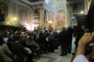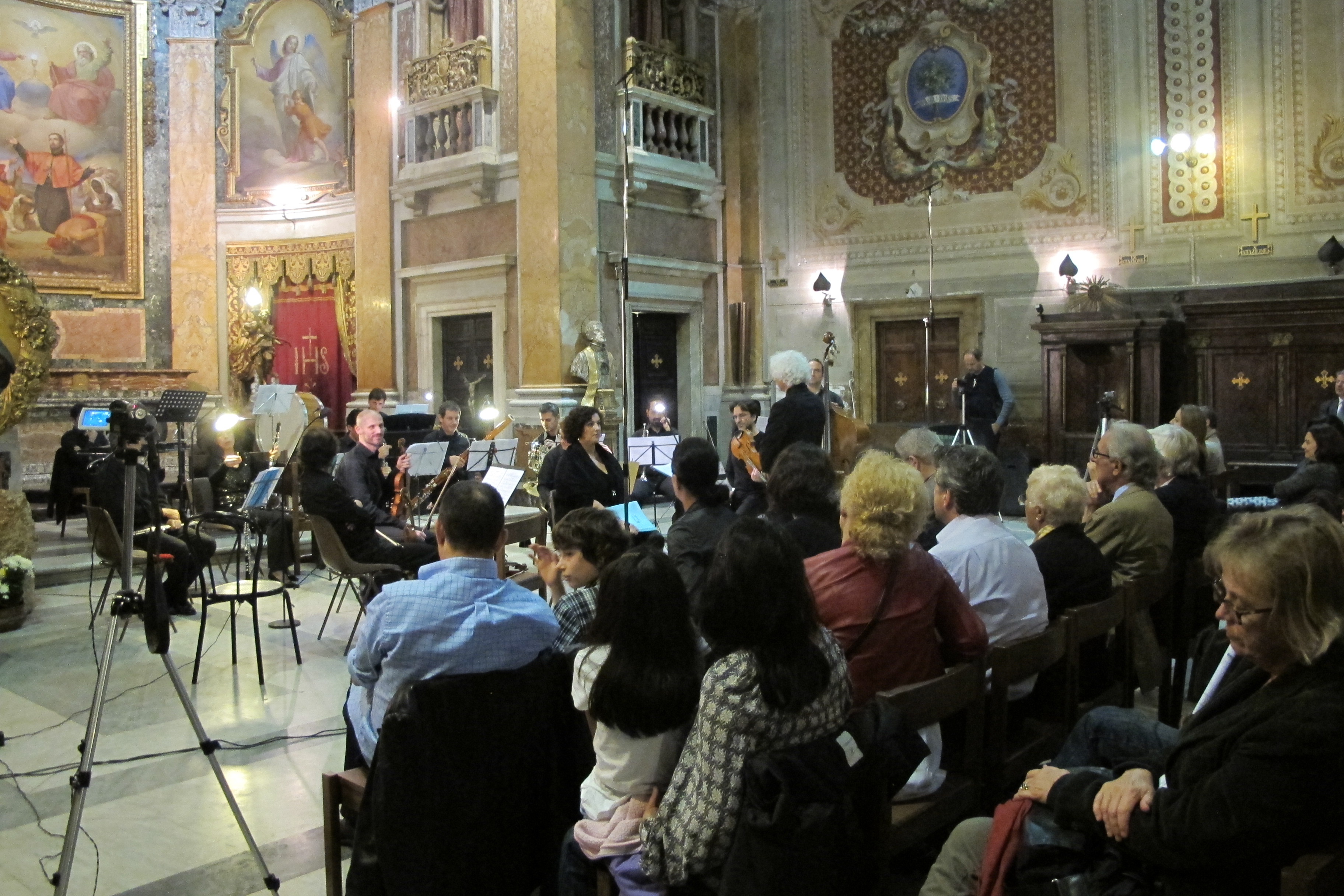 dell’Accademia di Romania nella serata di mercoledì, 6 novembre. Poco prima dell’inizio, per gli spettatori in piedi sono state portate delle sedie e così la sala è diventata quasi doppio. Il pubblico appassionato di musica classica, di qualità, era composto in gran parte dagli italiani che non potevano mancare una performance di alto livello. Il concerto ha culminato con il celebre Quinto Concerto Brandeburghese di Johann Sebastian Bach, sostenuto da Pierluigi Tabachin al flauto traversiere, Mauro Lopes Ferreira al violino barocco e Cipriana Smarandescu al clavicembalo insieme all’ensemble Aliusmodum. “Non è stato facile averli in quanto sono in giro per i tornei o incisioni dei dischi. Ci ha aiutato molto anche l’amicizia che loro hanno con noi, la voglia di suonare in un’atmosfera molto rilassata, c’è molta complicità tra noi, che favorisce il lavoro alle prove e negli incontri” aggiunge Riderelli.