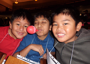 Tra i ragazzini che riempiono l’aula magna della Sapienza ci sono due “vecchie conoscenze” di Piuculture: Adrian e Giorgio, 8 e 9 anni, che frequentano la scuola Mazzini. Sguardo vispo, battuta svelta – guai a chiamarli bambini – e tanti sogni da realizzare: “Io voglio fare il cantante, il calciatore e il giocatore di rugby” racconta Adrian, mentre Giorgio preferisce la danza: “Voglio diventare un ballerino come Michael Jackson”. Alla discussione si unisce Daniel, 8 anni, materie preferite: italiano e religione. E anche Evans vuole rilasciare una dichiarazione alla stampa sulle sue preferenze, questa volta in fatto di cibo: “Hamburger, panino e patatine fritte”. Con Enrico e Alessio, di 7 anni, parliamo di hobby: lettura e giochi all’aria aperta, come “acchiappa fulmine”.
