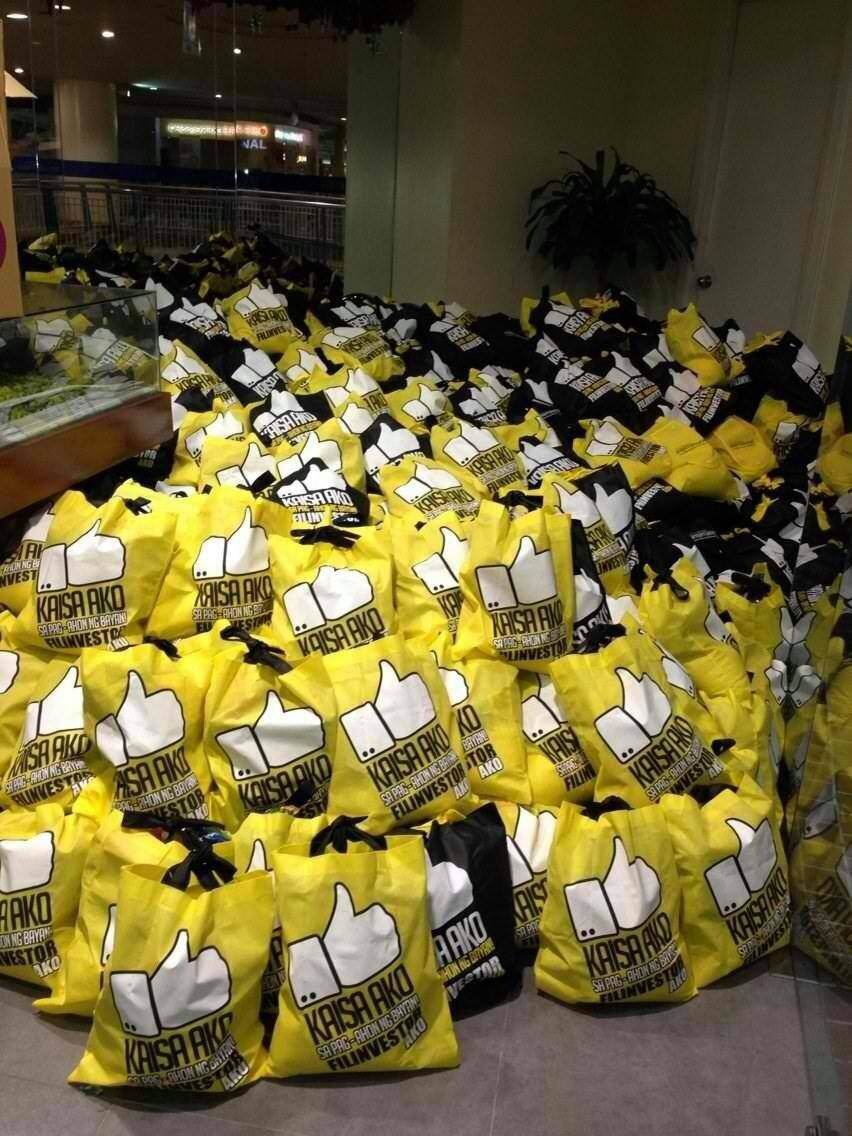 La Filinvest sta raccogliendo donazioni nella sua sede di via Castelfidardo 82, attraverso la campagna Filinvestor Kaisa bag for a cause. Donando 5 euro si potrà acquistare una borsa con prodotti alimentari destinata alle famiglie colpite dal tifone, che sarà preparata e distribuita direttamente in loco attraverso la sede filippina dell’associazione. La borsa contiene riso, prodotti in scatola, caffè, e può bastare ad una famiglia per circa 2-3 giorni.