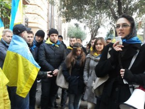 “Vogliamo un paese democratico, abbiamo il diritto di fare delle proposte anche politiche, visti i sacrifici della diaspora che contribuisce all’economia e allo sviluppo del paese. La voglia di ritornare in un paese europeo è grande, per quello chiediamo al presidente Yanukovich di firmare l’accordo di associazione con l’Unione Europea, se non adesso, in futuro, se non questo testo, allora altri. L’Ucraina è l’ago della bilancia tra l’Europa dell’est e quella dell’ovest, noi abbiamo diritto di fare parte dell’UE”, con questa speranza i cittadini ucraini si sono riuniti avvolti nelle bandiere nazionali, parlando al megafono durante il sit-in del 28 novembre in contemporanea alla diaspora di tutto il mondo.