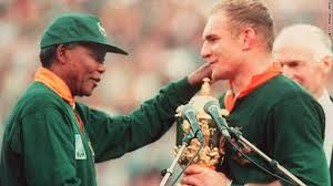 “Un buon leader può impegnarsi a iniziare in un dibattito in modo franco e accurato, sapendo che alla fine lui e il lato opposto dovranno essere più vicini e, quindi, emergere più forti. Non si ha questa idea quando si è arroganti, superficiali e disinformati” (Nelson Mandela)………….………….Rosy D’Elia“Imagine there’s no countries,it isn’t hard to do.Nothing to kill or die forand no religion too.Imagine all the peopleliving life in peace”http://www.youtube.com/watch?v=yRhq-yO1KN8Fabio BellumoreDivenuto presidente della Repubblica del Sudafrica, Mandela non si vendicò dei bianchi, che gli avevano causato 27 anni di prigionia e, al suo popolo oltre 30 anni di segregazione. Mandela volle tenere unito il Paese e lo sport fu un veicolo importante di questo obiettivo politico. Sospingere l’intero popolo sudafricano a tifare per la squadra di rugby, nella coppa del mondo, che si tenne in Sudafrica nel 1995, fu uno dei simboli più chiari di quella lotta. Infatti, la squadra di rugby era sempre stata l’emblema del Sudafrica bianco, dalla quale erano sempre stati esclusi i neri. La stretta di mano tra Mandela e il capitano della squadra e la vittoria della coppa del mondo furono la perfetta fotografia di questo desiderio di unione.