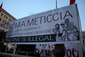 In capul coloanei de manifestanti, se regasesc studentii si membrii ai grupului care spune “STOP evacuarilor, ordinelor de sechestru”, dar spiritul general pare a se stinge in fata dorintei politice de a fi impotriva manifestatiei (in mod paradoxal) antagonista a asa-zisilor “forconi” (agricoltori). Sunt putine marturiile celor implicati si mai ales despre cetatenie. “Deja sunt multe persoanele ca si noi si cream o realitate care nu mai poate fi negata” striga un baiat a doua generatie de imigranti, iar o mama: “nu-mi pasa pentru mine, eu stie ce inseamna sa ai o identitate, de cand m-am nascut, dar imi doresc acelasi drept si pentru cei 4 copii ai mei care s-au nascut aici si se simt italieni”.