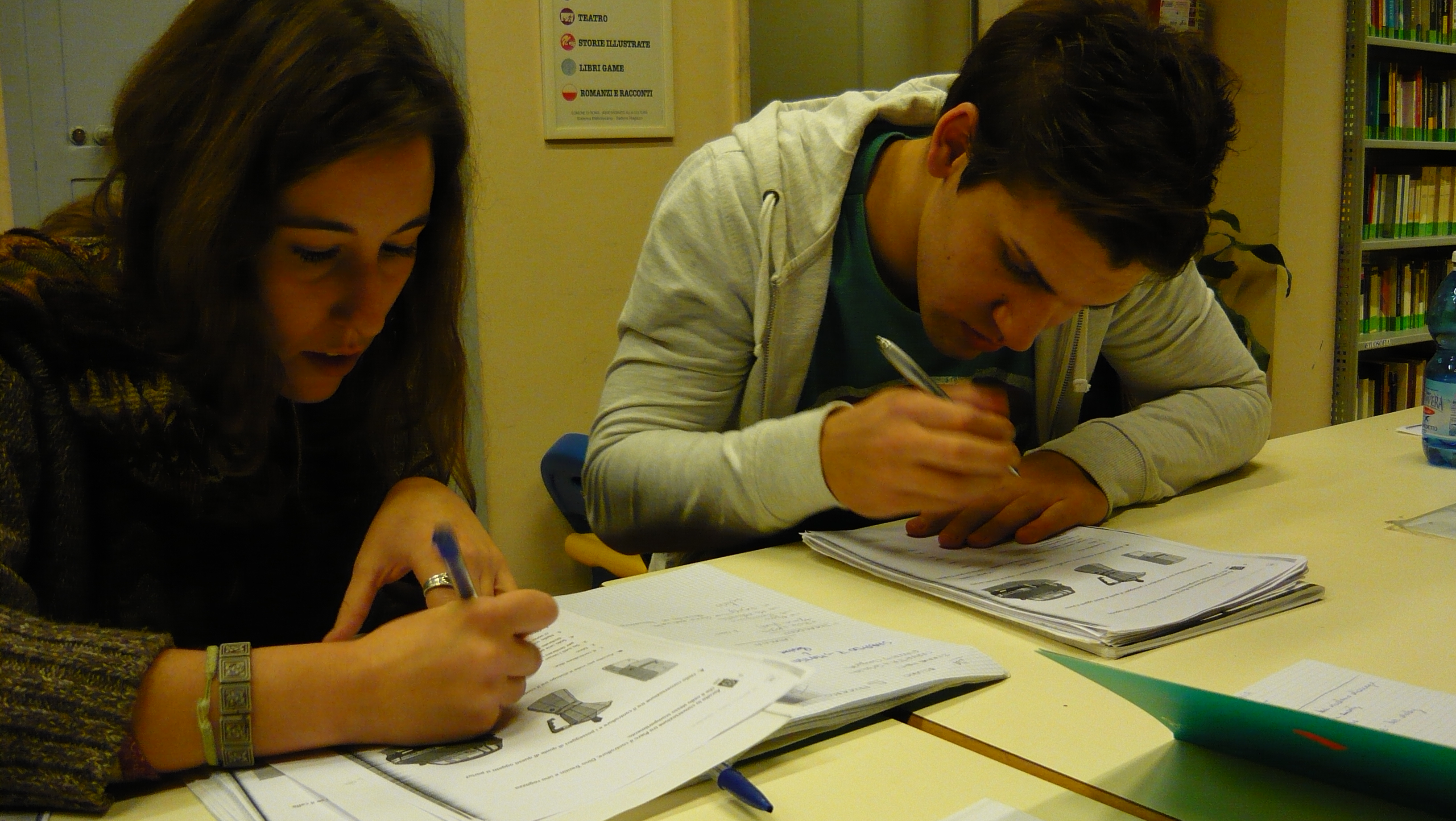 Cand sosesc in clasa de incepatori, cu intentia de a urmari lectiile dintr-un colt retras, Sara imi propune sa ma asez la masa, alaturi de elevi: “Stai cu noi!” Langa mine sta Maria, o chimista poloneza, de cativa ani in Italia. Apoi, mai este Estefania care, impreuna cu Susana, studiaza stiintele marine si va fi prezenta la Roma pentru cateva luni de zile pentru a participa la programul Erasmus. Mai este David, un fotbalist argentinian de 21 de ani, care invata limba italiana “pentru ca nu inteleg nimic!” Este si Beatrice, psiholog, romanca, care traieste aici cu logodnicul sau italian si care se umple de amaraciune atunci cand nu reuseste sa-si exprime gandurile in italiana: “As vrea sa-ti spun mai mult, dar e dificil pentru mine…” Se prezinta si Sara, jurnalista “pasionata de limba italiana si afectionata de colegii ei de clasa”, fondatoare al primului ziar on-line pentru copii pe platforma WordPress, Giacomino.it.