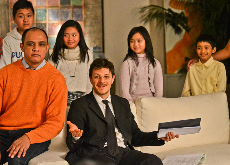 “Motore… Azione!”. La recitazione procede a ritmo serrato. Andrea Bosca dirige i movimenti di macchina, si cala nel suo personaggio, suggerisce agli altri attori battute e toni, li aiuta ad entrare nella parte. Gli artisti di Pyramid sono concentrati e rapiti, anche i più piccoli non si stancano mai di ripetere e riprovare. “Da loro ho imparato la curiosità e l’educazione: sono molto interessati, per nulla supponenti, estremamente precisi” spiega Andrea. Le scene prendono forma, arrivano le espressioni giuste, le emozioni, le risate.