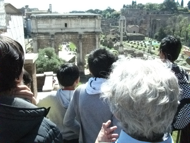 Ci si dirige poi a grandi passi verso i gradoni del Campidoglio per esplorare la discesa alle spalle del cavallo imperiale verso i Fori costruiti dall’ imperatore, Traiano. Affacciati ad ammirare le rovine, si ascolta la storia di Roma, si mettono a confronto le dimensioni delle grandi strade volute dai romani e qualcuno dei ragazzi ricorda timidamente di essere già stato qui “mi ha accompagnato mio padre” oppure “con mio zio una volta sono arrivato fino al Colosseo”, rivendicazione orgogliosa di una conoscenza pregressa.