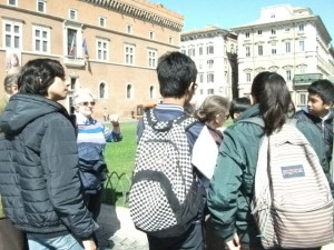 E così il gruppetto, composto dai ragazzi, la vicepreside della scuola e i volontari di Piuculture, procedono alla scoperta dell’Altare della Patria.I sei ragazzi sono silenziosi, ascoltano, non si distraggono anche se tra loro un po’ si rivelano, sorridendo “oggi abbiamo saltato musica” oppure “ma a che ora torniamo?” domandano in maniera velatamente strategica.