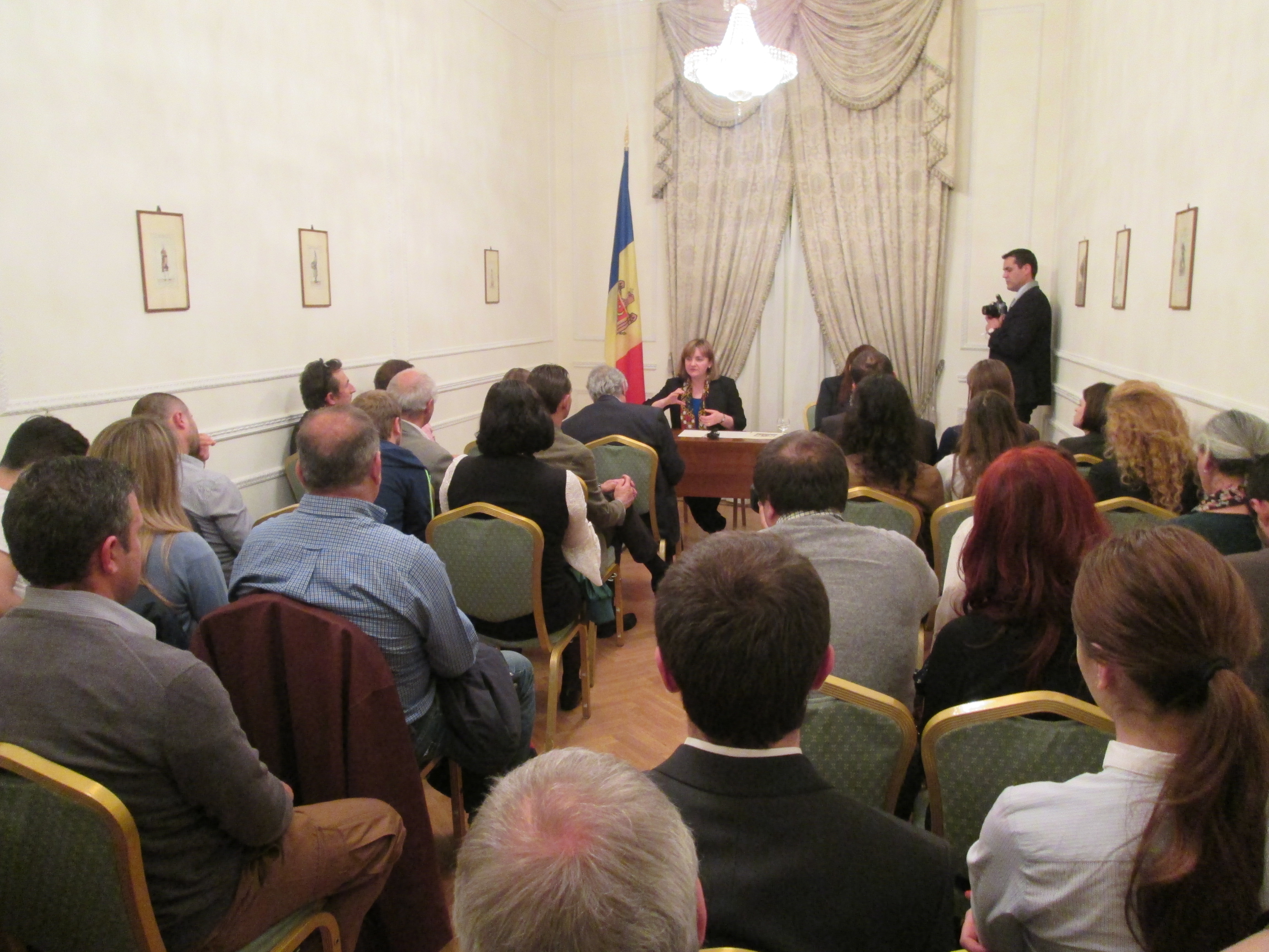 „L’Italia è il paese che ci ha sostenuto di più nel percorso di integrazione europea, probabilmente perché la comunità moldava residente in Italia è numerosa, raggiunge le 200mila presenze. L’ambasciata s’impegnerà nella promozione del paese ma è necessario l’aiuto dei cittadini della diaspora”, ha sottolineato Natalia Gherman, Vicepremier e Ministro degli esteri e dell’integrazione europea della R. Moldova, nel suo incontro di martedì con la comunità. Oltre 50 persone, tra rappresentanti dell’ambasciata, presidenti delle associazioni, studenti e semplici cittadini si sono riuniti per essere aggiornati sul percorso di integrazione europea, sui paesi che lo sostengono e su quelli che sono contrari, su nuovi accordi. Dopo Canada e USA, tantissimi paesi europei hanno dichiarato il loro sostegno. La Moldova ha intrapreso un percorso europeo irrevocabile e dal 28 aprile i suoi cittadini potranno viaggiare liberamente in Europa. Questo risultato il paese lo deve al duro lavoro dell’équipe guidata da Natalia Gherman.