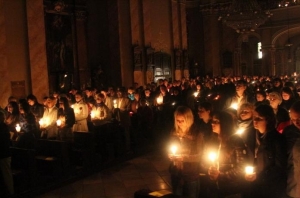 Sfanta Slujba incepe sambata seara in jurul orei 22.00, cu rugaciuni si reculegere. In Romania si Moldova, bisericile sunt incapatoare si inalte, in Italia ortodocsii fac liturghia in spatiile de langa bisericile catolice, amenajate special pentru rugaciune. Cele trei zile de Paste au aceeasi semnificatie pentru romani si moldoveni, iar traditia bisericeasca spune ca slujba ar trebui sa se faca atat luni cat si marti dimineata. Dar avand in vedere ca in acest an ziua Invierii la catolici coincide cu cea a ortodocsilor, 20 aprilie, preotii din est vor renunta la liturghia din a doua si a treia zi de Paste pentru ca vor fi mai putine spatii disponibile. Sambata seara migrantii au ocazia sa se intalneasca si sa faca schimb de noutati si impresii.