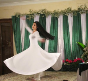 Lo show è iniziato con una performance di danza Sufi, in cui si è potuto ammirare l’abbandono di un vero Sufi che intendeva portare i presenti in una trance estatica con la sua danza vorticosa e circolare. I movimenti armoniosi della ballerina Valentina Manduchi, compagnia di danza Apsaras Dance Roma, hanno trasmesso il messaggio dei poeti sufi, quello di umanità, compassione ed inclusività. „Perso nell’estasi dell’amore puro, il poeta sufi fonde il proprio Io con quello della persona amata perdendo la propria identità individuale. Un amore che si trasforma in amore verso Dio che si estende fino ad abbracciare tutti gli esseri umani”, si legge nel comunicato distribuito al pubblico. Sabika si è esibita nella seconda performance di danza: una melodia popolare, che esprimeva l’aspettativa appassionata di un amante mentre veglia sul suo amato alla luce di una lampada di terracotta, espressione tipica della poesia Urdu. La terza performance di danza – tutte le rappresentazioni si sono alternate con le sfilate di moda – è stata realizzata sulle note di un misto di canzoni del leggendario cantante pakistano Nusrat Fateh Ali Khan, che aveva un talento unico per l’improvvisazione, diventato famoso per la fusione dei generi musicali tradizionali orientali e occidentali.