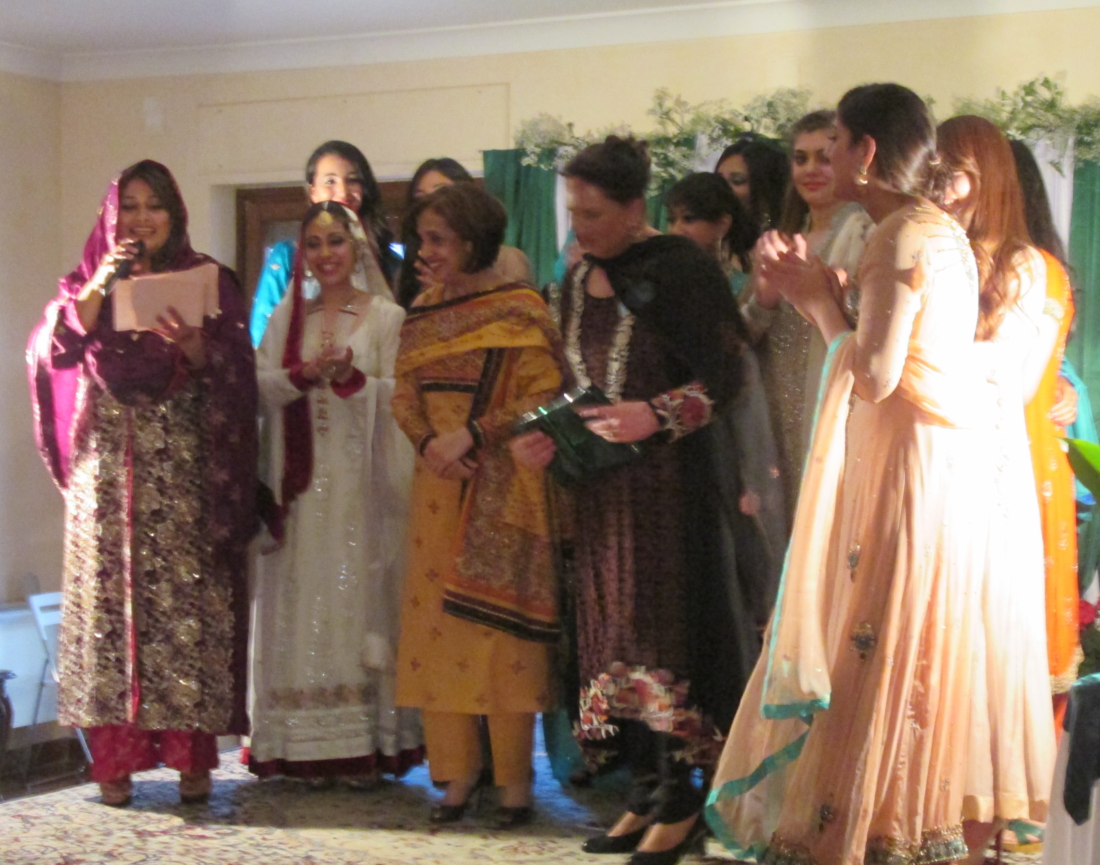 Alla fine dello show e del magnifico buffet con i piattii tipici della cucina pakistana, è iniziata la vendita degli abiti della sfilata alla presenza alla stilista Asma Raja, in Italia in questi mesi per promuovere il suo marchio Asma’s Attire. „Non ho ancora un atelier in Italia, la vendita avviene online, il lavoro fatto integramente a mano dalle sarte in Pakistan, che eseguono gli abiti su ordinazione”. Attratte dallo stile esotico, le ospiti misuravano i vestiti della sfilata di colori vivaci, arricchiti da pietre preziose, strass e decorazioni cucite a mano. Molte le ospiti venute ad assistere alla sfilata dello Show Culturale Pakistano, nella sala strapiena, ognuna portatrice della propria cultura, della propria storia, una varietà evidente a partire dai bei visi che testimoniano le diverse origini, che non gli impedisce di apprezzare una moda realizzata con sensibilità e buon gusto.