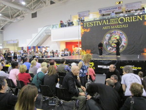 Nel pomeriggio dell’ultimo giorno di un colorato, profumato ed intenso Festival dell’Oriente, tra danza del ventre, danza di Bollywood, esibizione del Drago, il Maestro Flavio Daniele con gli istruttori della scuola Nei Dan si sono esibiti sul palco dedicato alle arti marziali analogamente a tantissime scuole. “Abbiamo impostato la nostra esibizione su due discipline: Taiji Quan di stile Chen e un’arte marziale interna molto antica, basata sul Taiji, sull’uso dell’energia e sull’imitazione cosciente dell’istinto animale. È l’essenza di un’arte di combattimento: le movenze sono molto aggressive, per arrivare all’istinto predatorio dell’animale devi portare sotto il controllo cosciente l’istinto animale e armonizzare la razionalità con il cuore”, spiega il maestro Daniele.