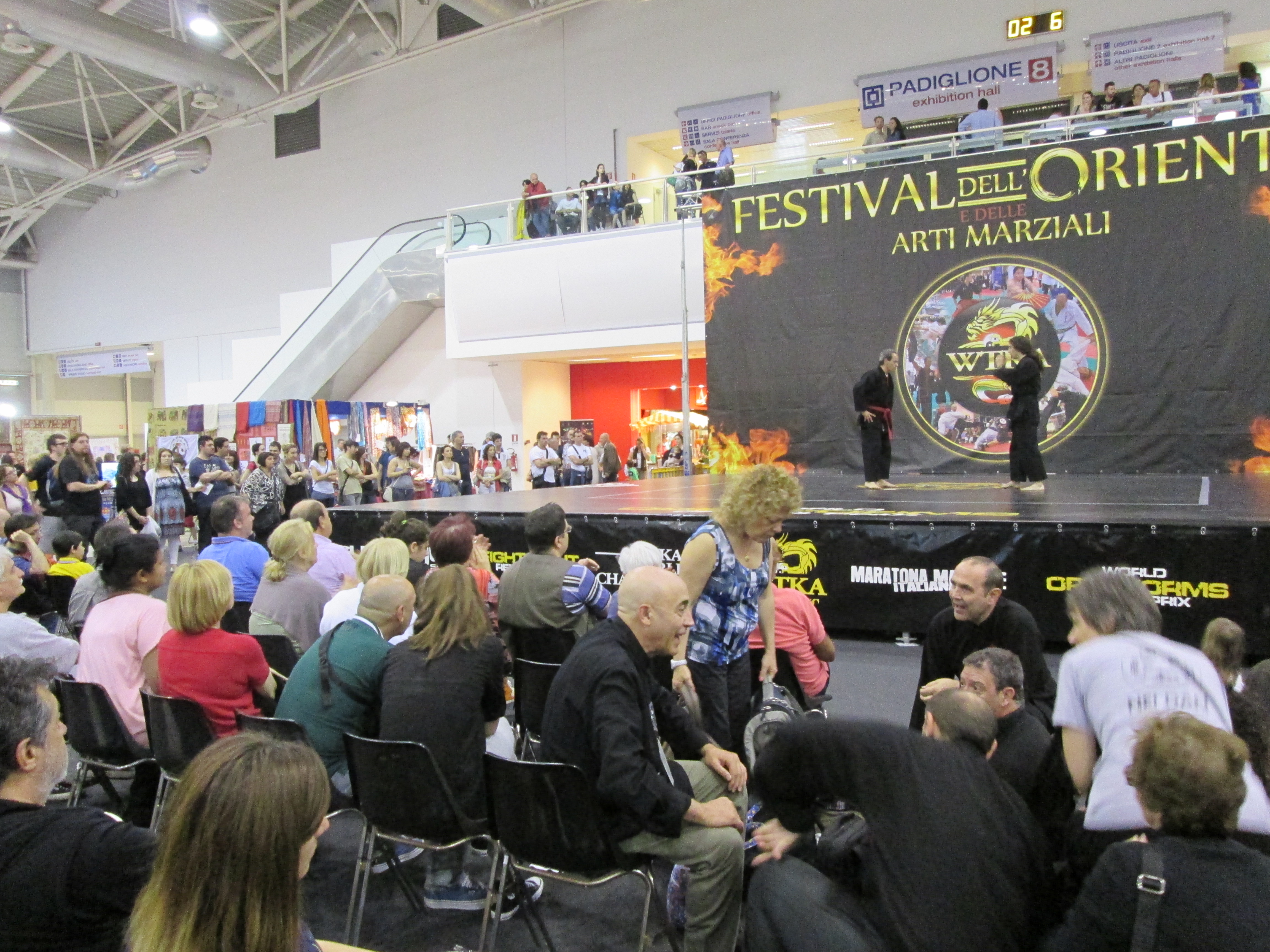 „La forza nasce dall’equilibrio, dall’armonizzazione, dal controllo dei tuoi pensieri: se non controlli le tue emozioni e diventi aggressivo – la violenza è sempre un atto di squilibrio – non sei forte. Imparare ad essere in armonia con se stessi, fare in modo che gli effetti negativi vengano deviati in modo tale che non ci colpiscano, ecco lo scopo dell’arte marziale”, è solo uno degli insegnamenti del Maestro Flavio Daniele, scuola Nei Dan, nella conferenza „L’arte marziale e la longevità” che ha tenuto il 2 giugno al Festival dell’Oriente. Invitato a raccontare i segreti di Taiji Quan e Qi Gong che allungano la vita, il maestro ha parlato di principi utili per tutti i presenti, anche per quelli che non praticano la disciplina. Un discorso confermato dai suoi discepoli e stimolante per chi vorrebbe imparare a conoscere se stesso e a cambiare stile di vita.