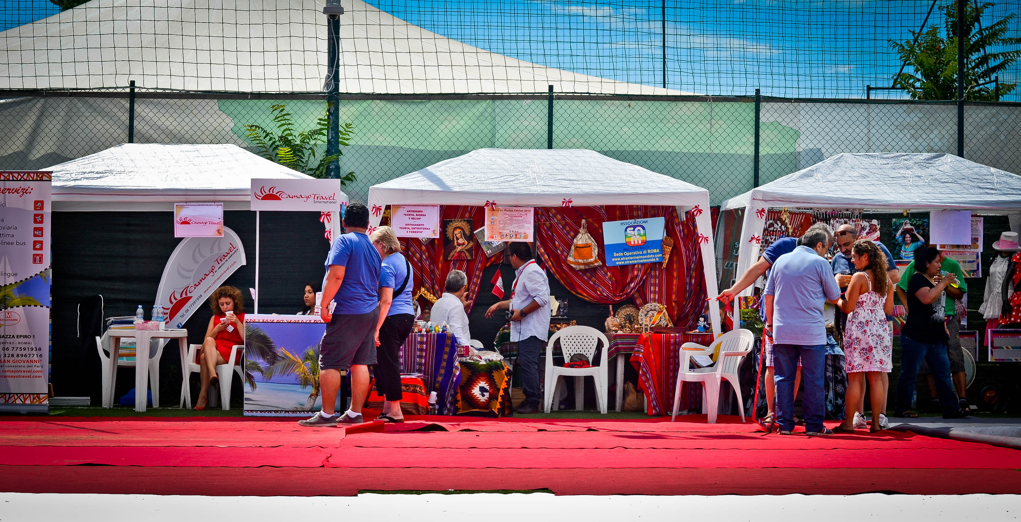 Il cielo sul Certosa Calcio di Centocelle domenica 27 luglio minaccia pioggia. Eppure, strategicamente al coperto, resiste al brutto tempo il grande allestimento di stand, ristoranti, mostre, giochi per bambini e spettacoli realizzato da più di cento persone provenienti dalla comunità peruviana di Roma. Tanti, quest’anno, gli organizzatori: il Consolato e l’Ambasciata del Perú in Italia e presso la Santa Sede, il Consejo de Consulta, l’ASD (Associazione Sportiva Dilettantistica) Perú – Italia.