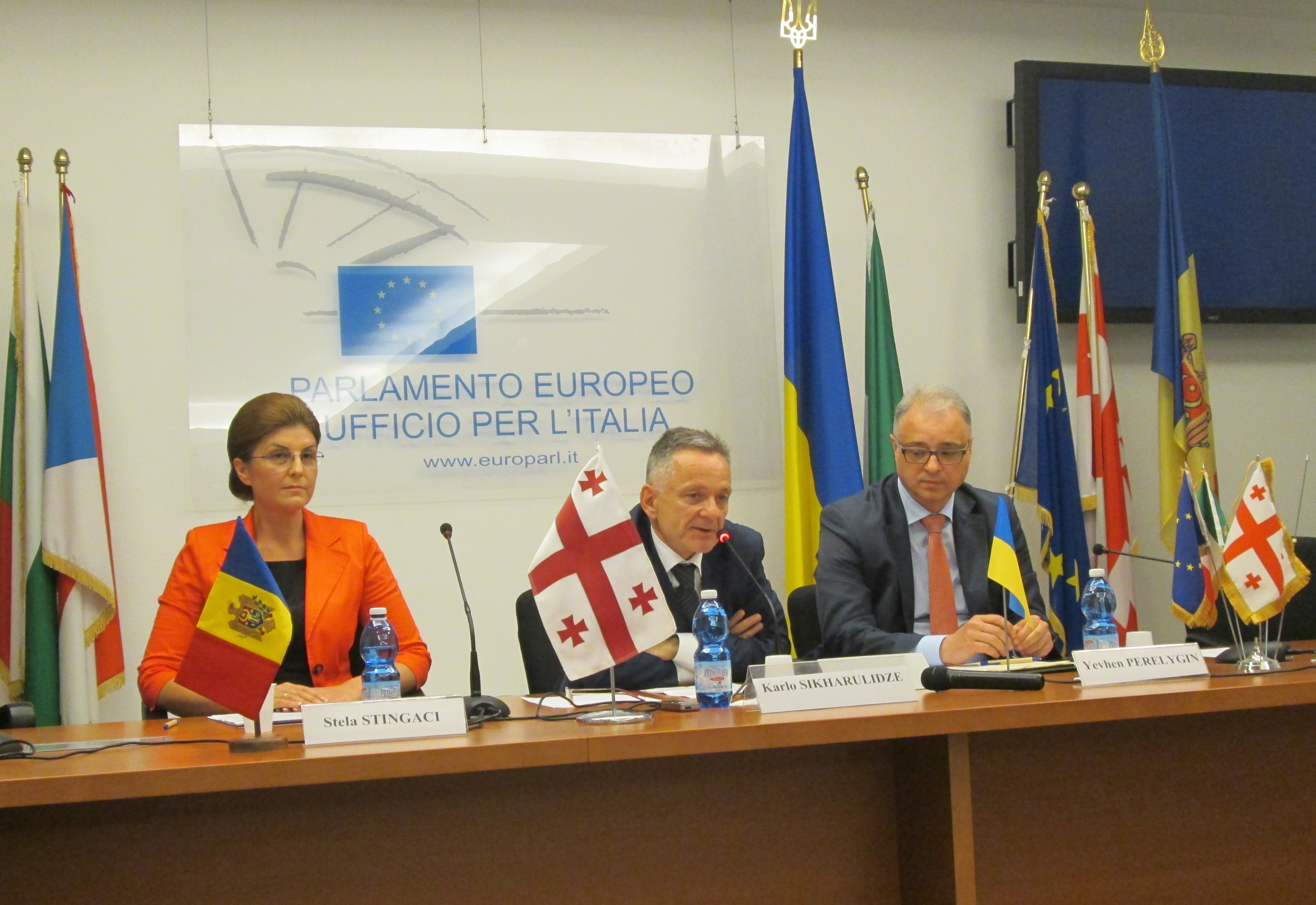 “Ripartiamo da qui per proseguire nelle riforme necessarie al raggiungimento degli standard europei e al rilancio dell’economia georgiana. Ci aspettiamo a un incremento delle nostre esportazioni verso i mercati europei di circa il 20%”, dice il diplomatico georgiano Sikharulidze. Tutti si aspettano nuove opportunità di business, in particolare per l’Ucraina nei settori energetico, agricolo, del food processing. “Una chance per combattere la corruzione, modernizzare la società e l’economia, così da dare fiducia nel futuro ai nostri cittadini”, ha aggiunto l’ambasciatore di Moldavia, Stela Stingaci.