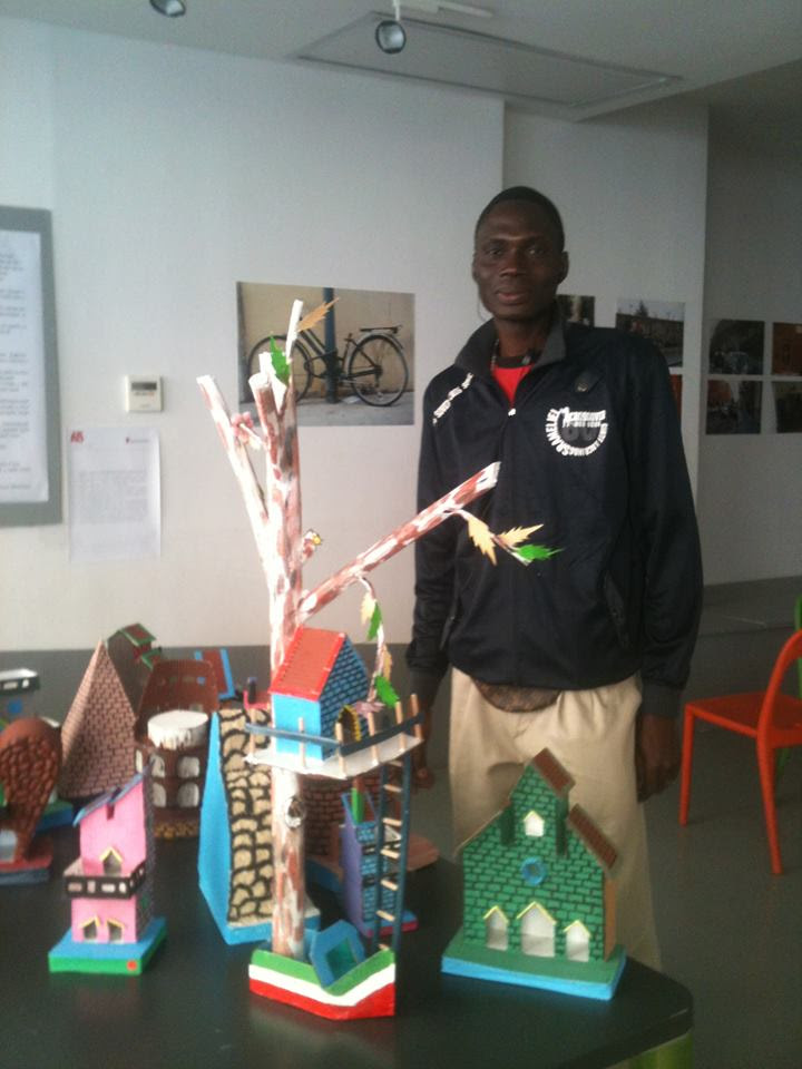 Olivier Dipama e “Les Maisonettes”, mostra dedicata alle persone senza fissa dimora e realizzata da Civico Zero con Save the children ed Amnesty international nel 2012 (photo credit: Rebecca Spitzmiller)