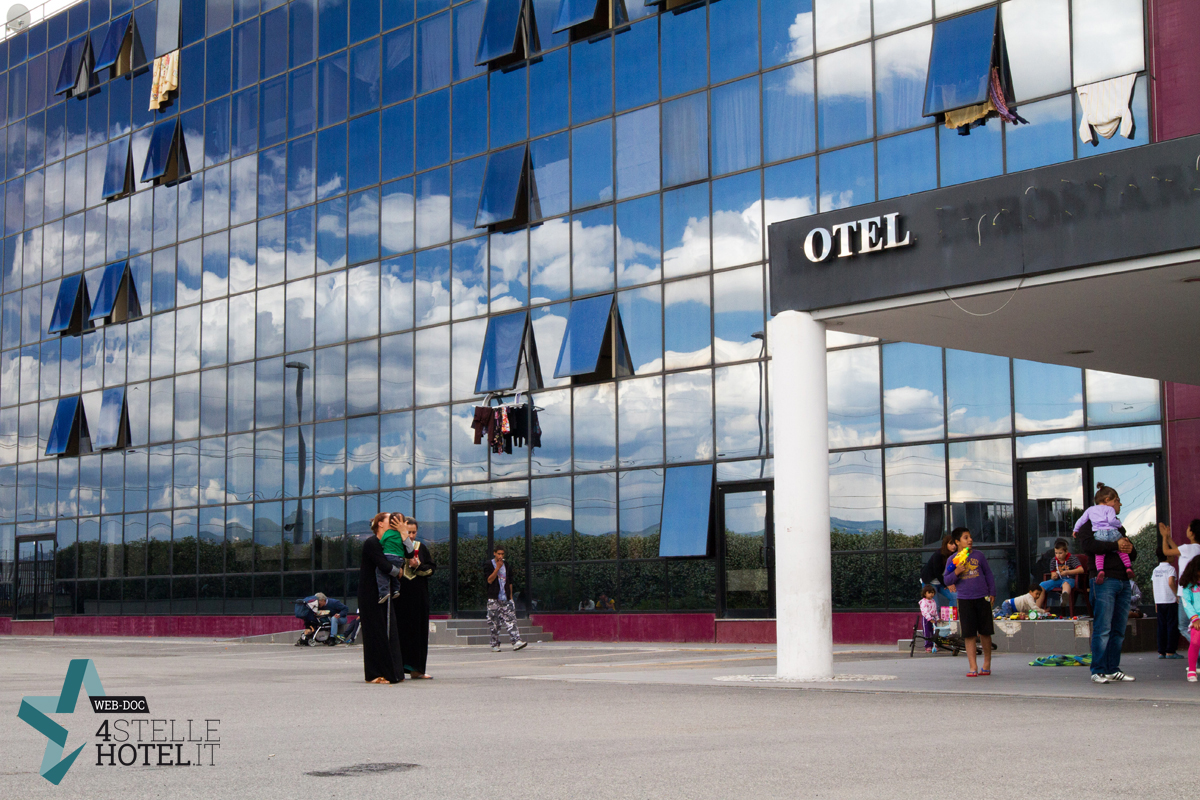 “Un condominio multietnico”. Così l’hotel diviene un palazzo come un altro dove ora convivono 500 persone. Molti di loro sono richiedenti asilo e rifugiati. Alcuni di loro lavorano, i bambini vanno a scuola, chi rimane “a casa” pensa a tenerla in ordine. Pochi i single, molte le famiglie: “dei 218 nuclei familiari, 52 provengono dal Corno d’Africa, 85 dal Nord Africa, 20 dall’Africa sub sahariana, 28 dall’Est Europa, 29 dall’America Latina, 4 dall’Italia e 12 sono famiglie miste. Circa 20 famiglie hanno ottenuto la cittadinanza italiana dopo molti anni di rinnovo del permesso di soggiorno”. I protagonisti vengono presentati con dei bellissimi ritratti fotografici e sono: Fikir dall’Etiopia, stanza 152; Ibrahim dal Marocco che vive con Valentina dalla Romania e il piccolo Islam, nato in Italia, stanza 412; Rabia Alì dalla Libia, stanza 215; Anna dall’Etiopia, stanza 302; Zeina dal Senegal con Serigne Fallou nato al 4Stelle, stanza 521; Eugenio dalla Moldavia, stanza 244; Agnes dalla Nigeria, stanza 144; Nasser dall’Algeria, stanza 316; la famiglia Petru dalla Romania, stanza 231; Mimi dall’Etiopia, stanza 108; Ramsi dalla Tunisia, stanza 410; Ninish e Tezfai dall’Etiopia, stanza 127.