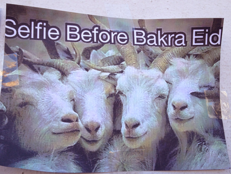 Sono le 12 ed è ora di tornare a casa per preparare l’agnello, piatto tipico dell’Id al-adha che ricorda il sacrificio di un montone compiuto da Abramo, fermato da un angelo prima di immolare il figlio Ismaele come prova di fede a Dio. Girato l’angolo della moschea di Centocelle c’è fermento davanti a uno dei negozi che vendono carne halal. “Stiamo aspettando l’arrivo di circa cinquanta agnelli” Abdelilah è un amico del proprietario e ama trascorrere la festa in negozio per rivivere appieno le tradizioni: “Chi ne ha la possibilità compra l’animale vivo e dopo la messa va in mattatoio per assistere al sacrificio rituale. Quando ero bambino non vedevo l’ora di aiutare mio papà con un piccolo coltello”. L’animale viene diviso in tre parti: “Una parte si mangia in famiglia, una parte è destinata agli ospiti, mentre il restante viene donato ai bisognosi che non possono permettersi di acquistarlo”. E nell’era del web circolano anche immagini irriverenti, simili a quelle che si diffondono durante la pasqua, con buona pace degli animalisti. Ma si sa, la tradizione è tradizione.