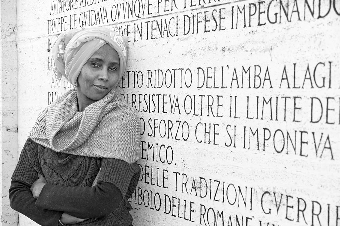Safia Omar Mamoud Somali migrants photographed on deck Amedeo D’Aosta/ Safia Omar Mamoud migrante somala fotografata sul Ponte Amedeo D’Aosta a Roma.
