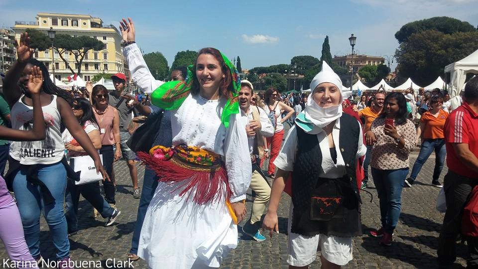 Da 24 anni la manifestazione organizzata dai Missionari Scalabriniani riunisce le culture del mondo che animano la capitale. “Per noi è bellissimo mostrare i colori delle nostre tradizioni” sorride Barbara, che dal 2007 partecipa alla kermesse insieme alla comunità boliviana della chiesa di Santa Maria della Luce a Trastevere: “Ogni anno portiamo un abito tradizionale e una danza del nostro paese. Il ballo ci fa dimenticare la sofferenza e ritrovare il sorriso”. Una delicata composizione di fiori troneggia al centro dello stand del Guatemala: “Si tratta un tappeto che è usanza confezionare per la processione di Pasqua” spiega Valter, che ogni terza domenica del mese si riunisce insieme alla comunità nella chiesa di San Saturnino: “Rappresenta una tejedora, una filatrice che realizza abiti tradizionali”. “Ci incontriamo la prima domenica del mese per la messa in francese che si celebra alle 13” racconta Evelina, coordinatrice della comunità della Costa d’Avorio della parrocchia SS Trinità a Villa Chigi: “Di questa festa adoro il caos, la gioia e le risate della gente e il messaggio che trasmette, di rispetto reciproco per tutte le culture”.