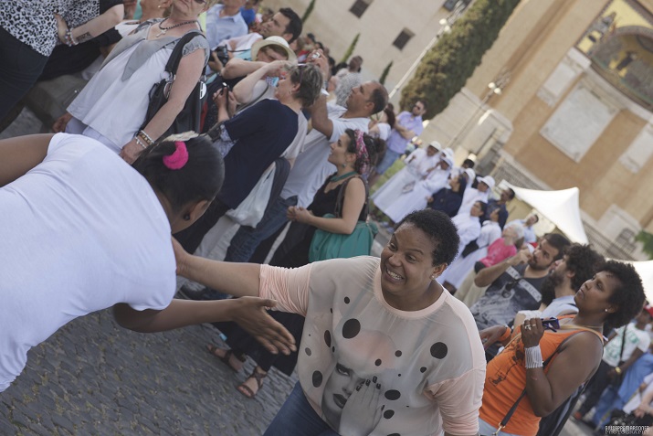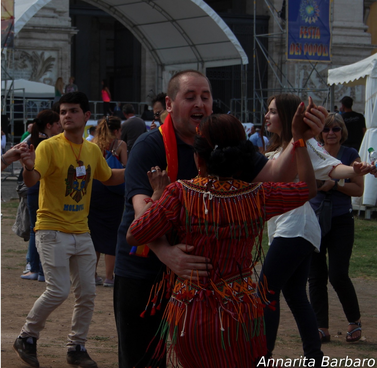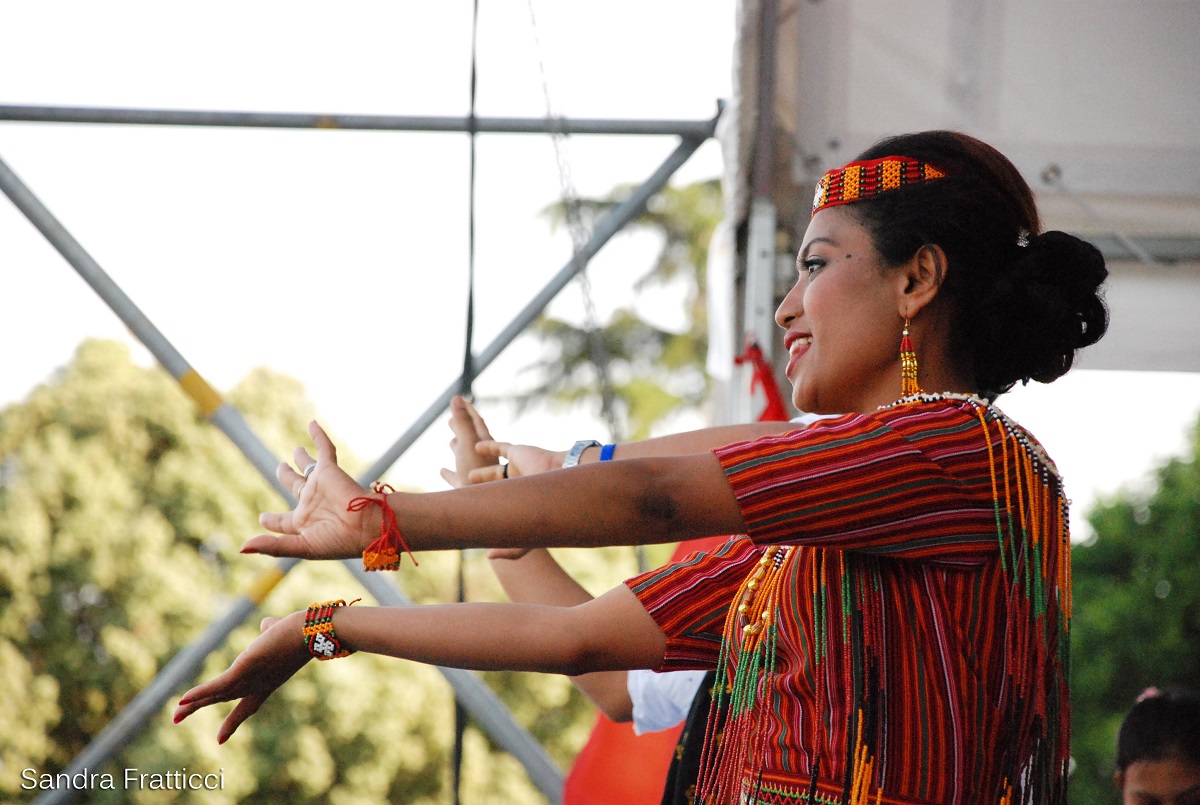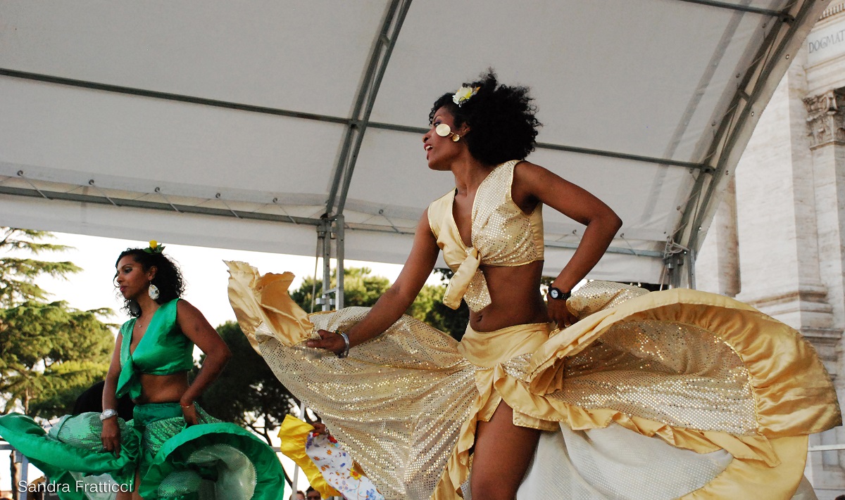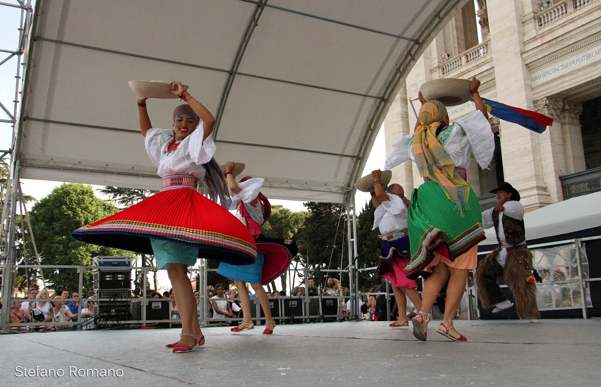 Dopo una pausa pranzo arricchita dalle cucine di nove paesi dalle 15 la festa entra nel vivo, con 21 gruppi di danza che si alternano sul palco. I ritmi travolgenti hanno la meglio sul caldo torrido: il pubblico balla sulle note della marinera peruviana e della chacaregna equadoregna, si incanta con le gentili movenze dell’Indonesia, si scatena con l’entusiasmo della Nigeria, s’innamora dei saltelli sbarazzini della Moldavia.