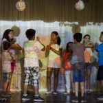 Vogliamo raccontarvi come sono nati la musica e i canti: lo striscione appeso nella grande aula con palco e sipario della Principessa Mafalda parla chiaro. I bambini sono in fila in fondo allo stanzone, i genitori e i fratelli seduti un po’ più avanti, armati di cellulari e macchine fotografiche. Il centro estivo organizzato da Piuculture per Approdi, il progetto finanziato dall’Otto per mille della Chiesa Valdese, chiude la stagione con uno spettacolo completamente realizzato dai bambini: “sono loro le voci registrate, i lavori che vedete alle pareti, anche la canzone finale”, annuncia in apertura Emilia Martinelli, operatrice dell’associazione Fuori Contesto e ideatrice, insieme a Matteo Frasca, del laboratorio teatrale per il centro estivo.