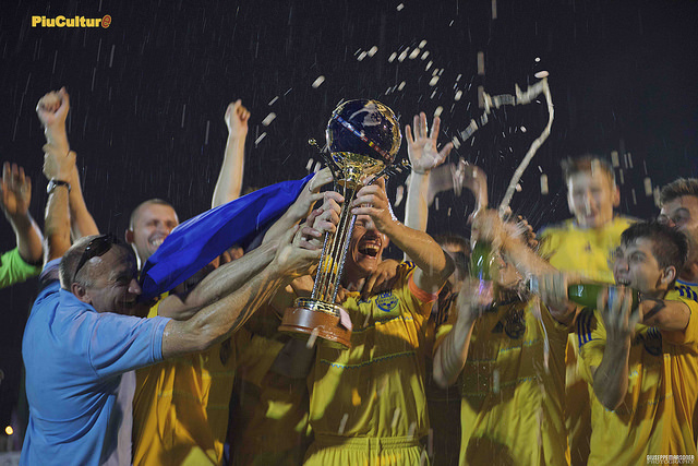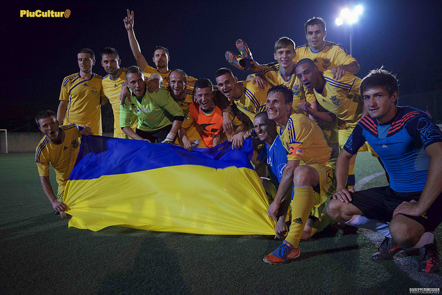 All’improvviso si sente il fischio finale e sugli spalti gialloblu scoppia la festa. L’Ucraina ha vinto 2-1 contro il Capo Verde e i giocatori alzano la coppa al cielo con entusiasmo e speranza. La stessa speranza con la quale sognano che un giorno, non troppo lontano, nel loro paese alzino le mani dalle armi per mettere fine ad una guerra nella quale, secondo l’ONU, oltre 5 mila persone hanno perso la vita e più di 13 mila sono rimaste ferite.