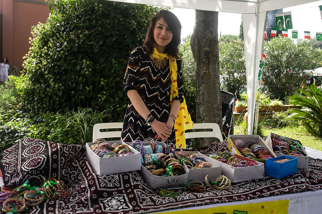 Metre dolci note malinconiche si alternano ai ritmi incalzanti delle percussioni è possibile perdersi tra i mille colori dei prodotti d’artigianato: porcellane decorate con motivi orientali, sculture in legno, pachemine e abiti variopinti.Brillano al sole centinaia di churiyuan, bracciali a cerchio che rappresentano un accessorio molto amato dalle donne in Pakistan, mentre poco più in là mani e braccia vengono arabescate con tatuaggi all’hennè.