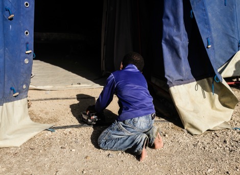 Aria di cambiamenti nella Tendopoli a Tiburtina per i migranti in transito, allestita il giugno scorso. Il sole splende, ma c’è ancora qualche pozzanghera dopo la pioggia del giorno prima. Non è un problema per i bambini, che giocano incuranti a piedi nudi.