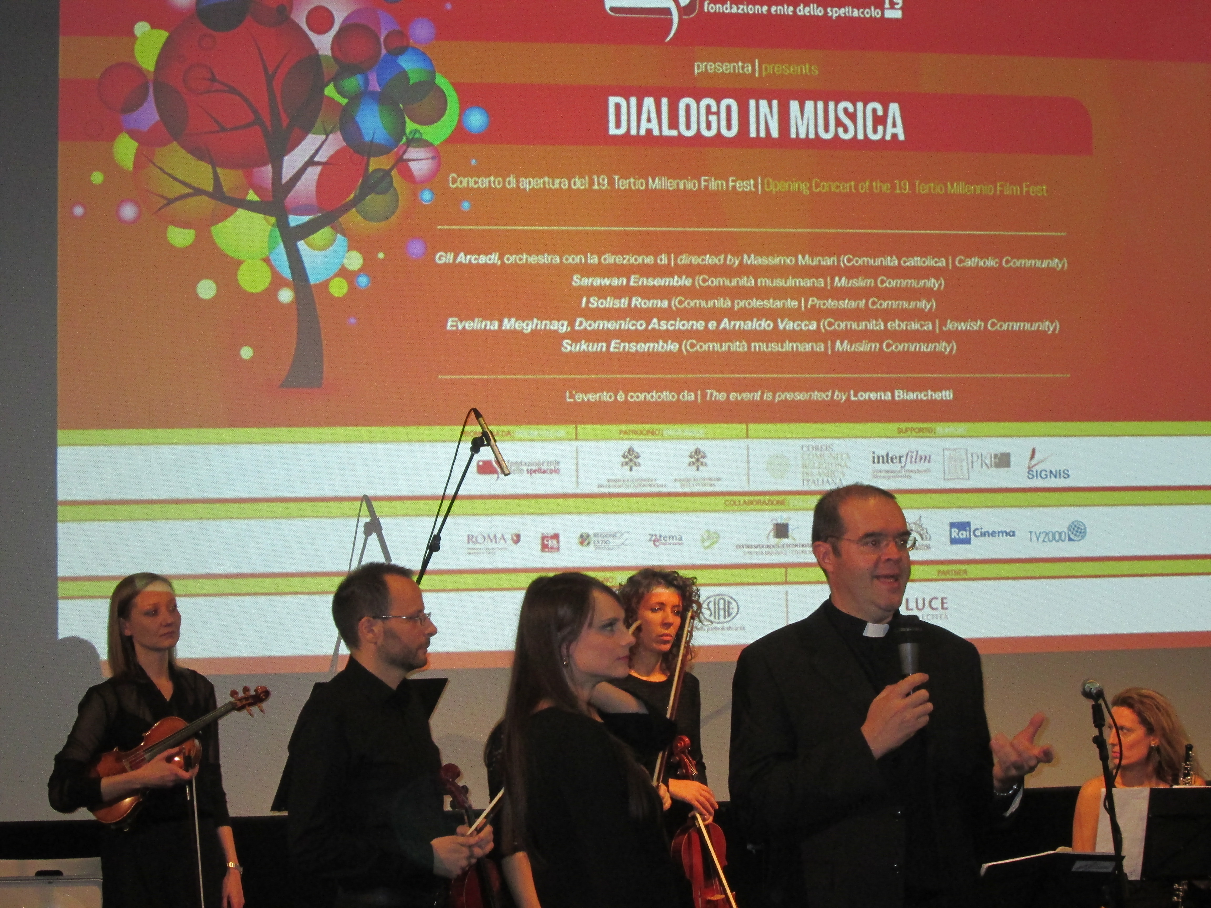 Domenica 25 ottobre, alla Casa del Cinema a Villa Borghese, la 19° edizione del Tertio Millennio Film Fest è stata inaugurata con il concerto Dialogo in musica presentato da Lorena Bianchetti, giornalista e conduttrice di A Sua Immagine, Rai Uno. I protagonisti della serata erano musicisti di diverse culture che operano a Roma, tra quali il gruppo Sarawan, composto da tre artisti fissi iraniani e condotto da Mohssen Kasirossafar. Hanno interpretato dei brani con tenta religiosa tratti dall’opera del grande poeta persiano Hafez. A rappresentare i musulmani è stato anche il Sukun Ensemble, che